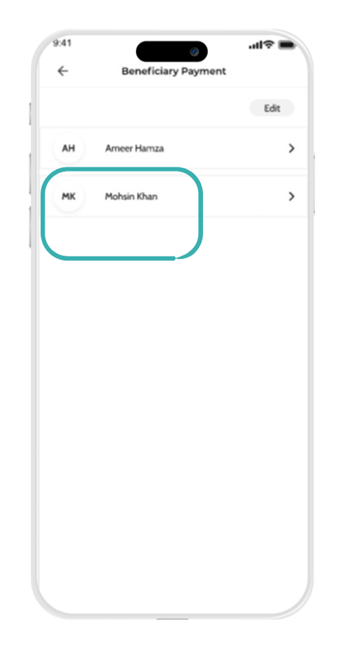 4. A list of saved beneficiaries will appear. Select the desired beneficiary.