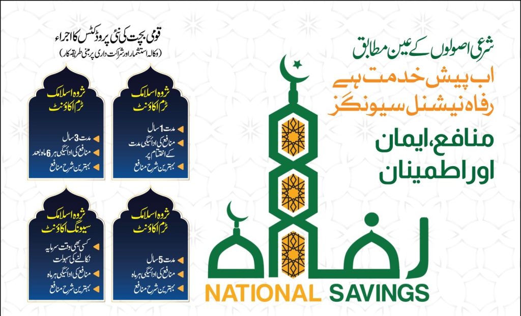 Well-cognizant of the need, Central Directorate of National Savings (CDNS) is fully committed to structure and offer investment avenues which are fully compliant to the principles of Sharia. As a first step towards the objective, and in view of the long outstanding desire of public to have a Sharia compliant investment avenue, CDNS has launched a dedicated Islamic window, named as Rafa National Savings (RNS). RNS is being established to offer Sharia Compliant savings solutions to the public, thereby promoting interest (Riba) free savings and investments opportunities.